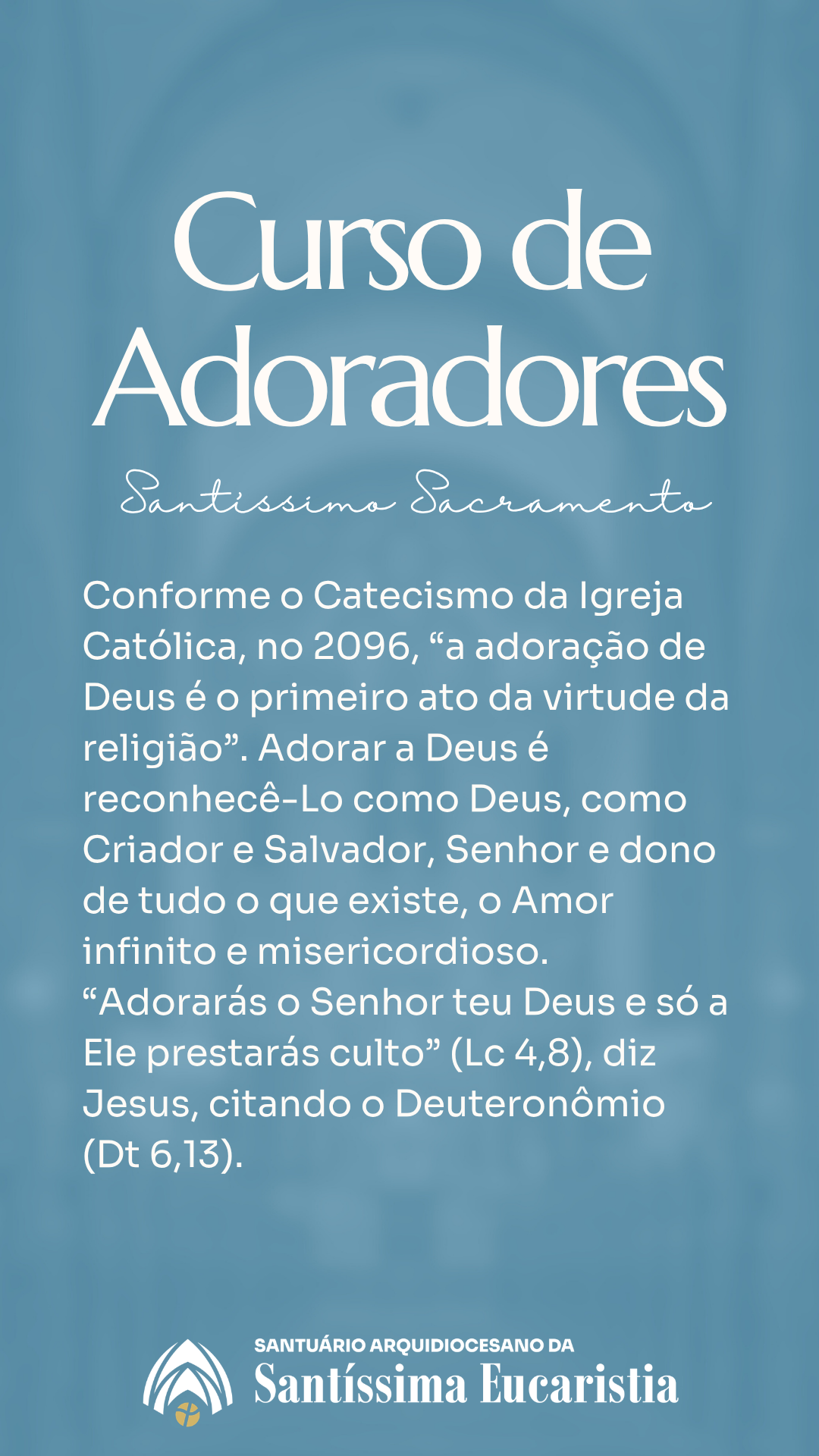 O curso é destinado a todos que desejam iniciar ou renovar sua caminhada como adoradores, compreendendo melhor o sentido da Adoração Eucarística e assumindo esse compromisso com consciência e devoção.