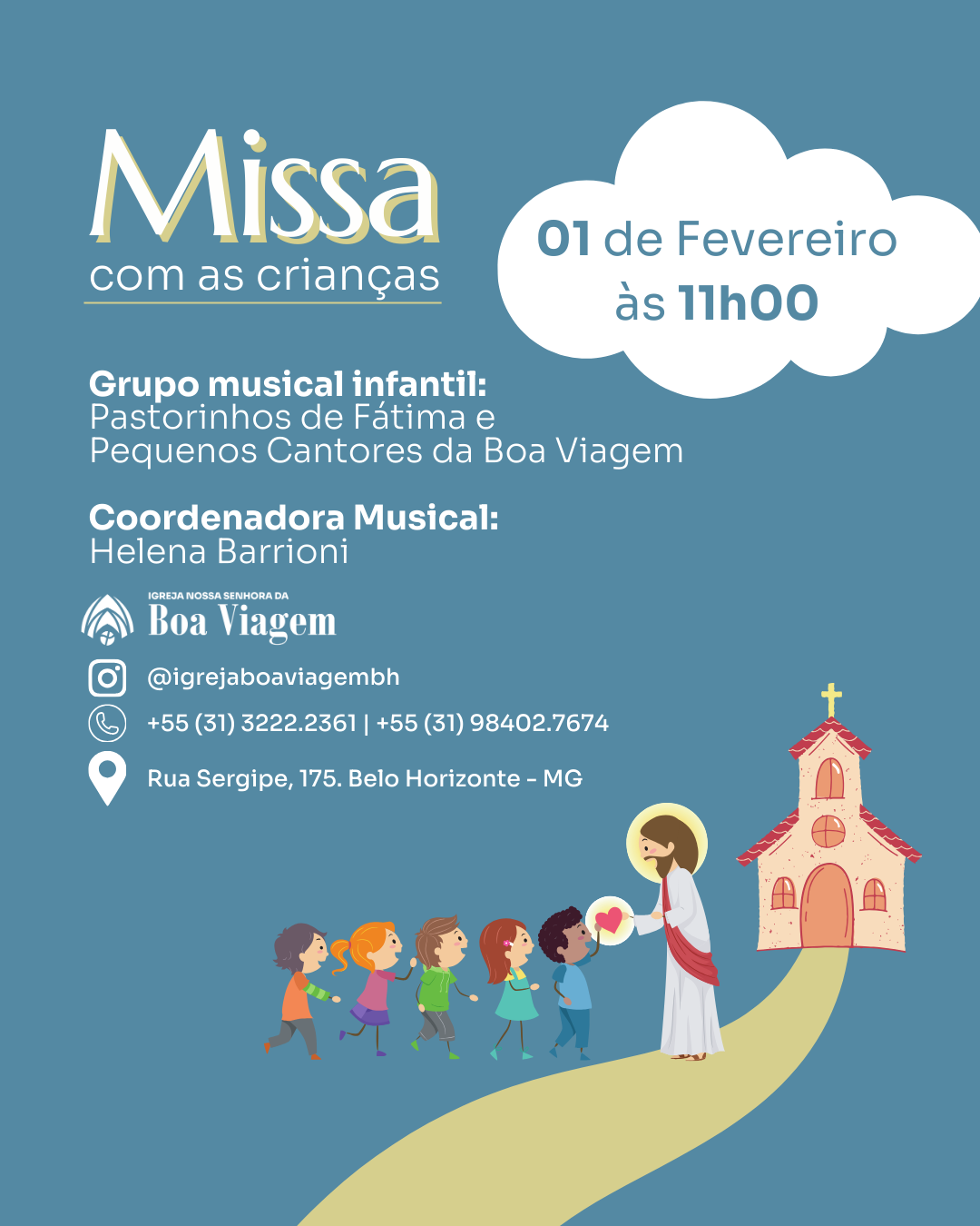 Nesta celebração, teremos a participação especial do grupo musical infantil Pastorinhos de Fátima e Pequenos Cantores da Boa Viagem, sob a coordenação musical de Helena Barrioni, tornando o momento ainda mais bonito e envolvente para as crianças e suas famílias.