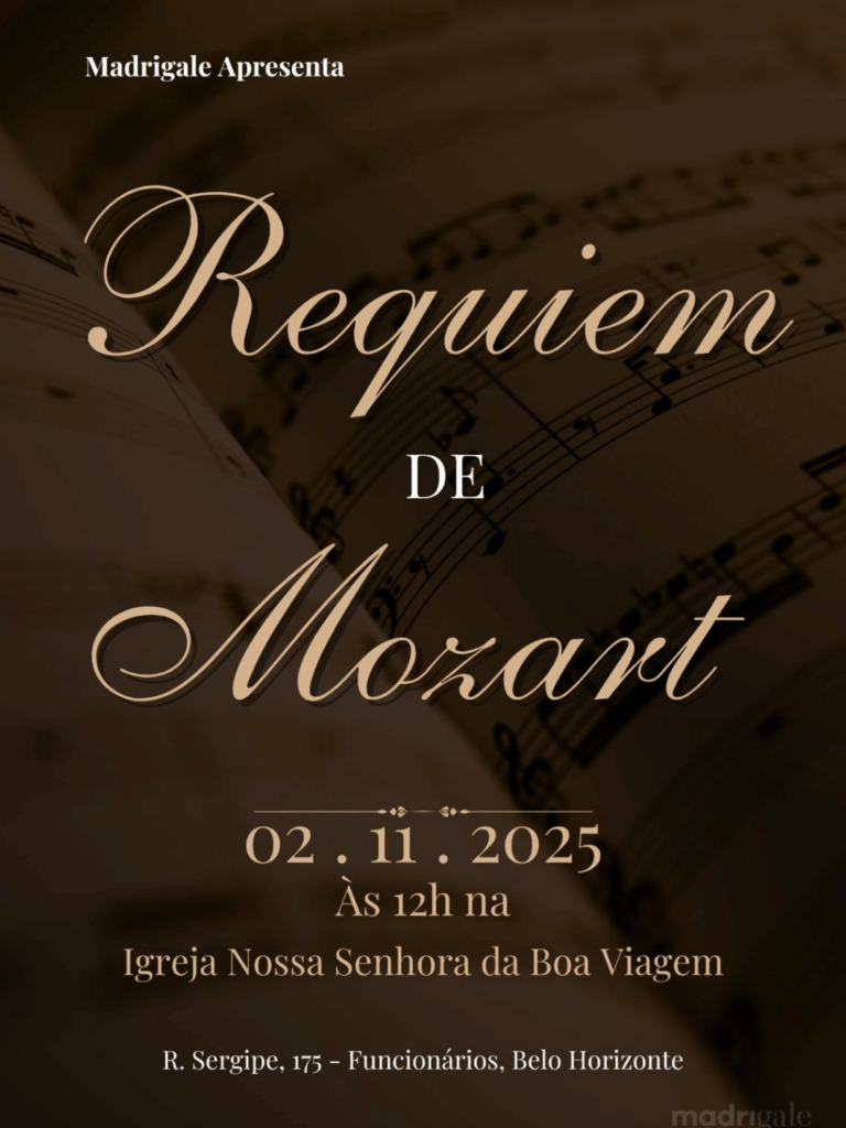 No Dia de Finados, teremos uma apresentação do Requiem em Ré menor, K. 626, de Wolfgang Amadeus Mozart, um dos marcos da música sacra. Será um momento de beleza e oração pelos fiéis defuntos, integrando tradição musical e espiritualidade cristã.