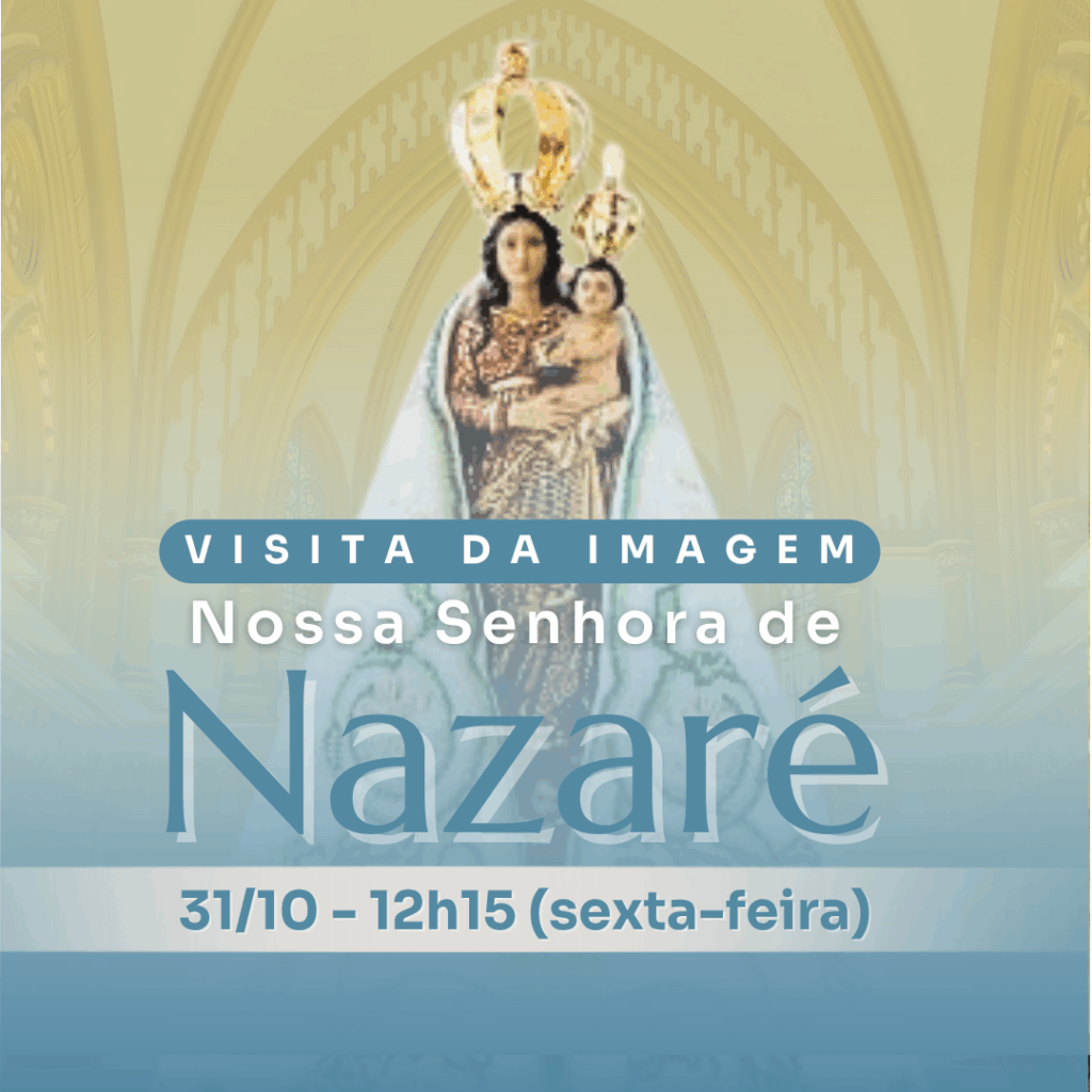 Com alegria, receberemos a visita da imagem de Nossa Senhora de Nazaré em nosso Santuário. É um momento especial de fé, devoção e comunhão, inspirado na tradição do Círio de Nazaré, em que os fiéis manifestam amor filial à Mãe de Jesus. Convidamos toda a comunidade, famílias e devotos a se unirem em oração.