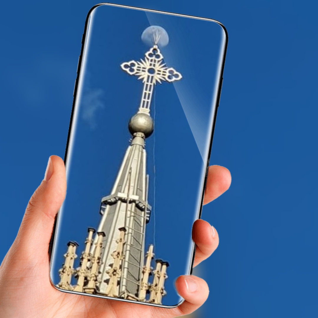 Ela é composta de três níveis de coroamentos de pináculos (pequenas agulhas) que vão dando beleza ao templo, ornado de mais de 100 destas agulhas.
